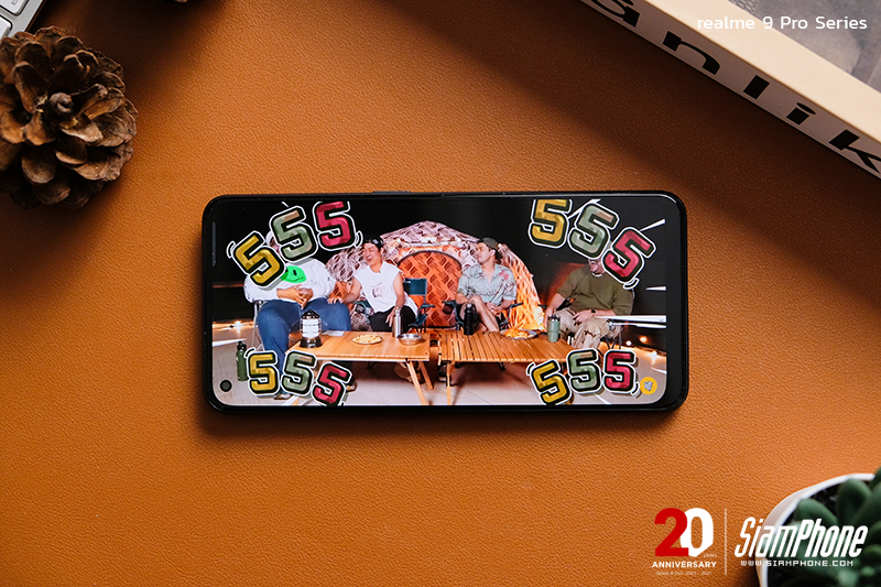 นอกจากชิปแรงๆ แล้ว ทางด้านของจอแสดงผลก็ให้มาอย่างไม่กํ๊กสเปค โดยรุ่นพี่อย่าง realme 9 Pro+ มากับจอ AMOLED ขนาด 6.4 นิ้ว FHD+ มีอัตรารีเฟรชเรทที่ 90Hz รองรับการสแกนลายนิ้วมือใต้หน้าจอ แล้วยังใช้ในการวัดอัตราการเต้นของหัวใจได้อีกด้วย