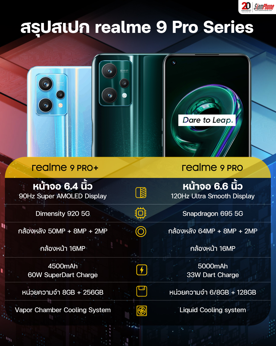 สเปกเบื้องต้นของ realme 9 Pro และ realme 9 Pro+