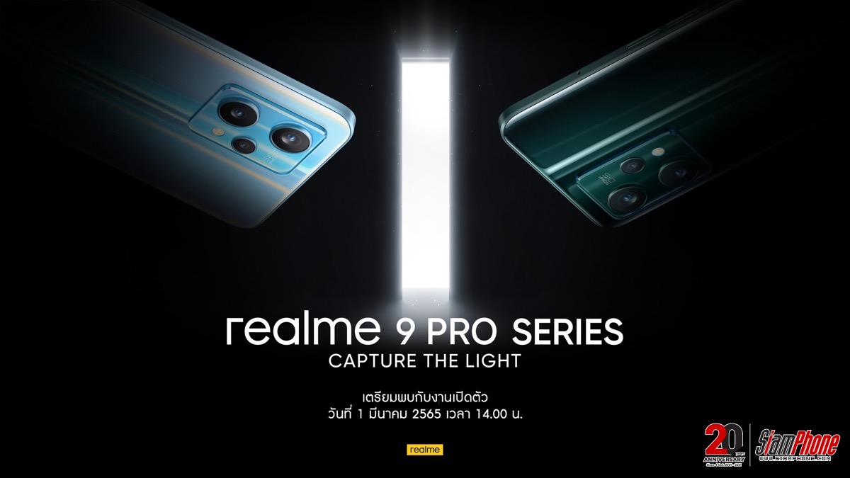 เตรียมพบกับ realme 9 Pro Series ซึ่งเป็น Hero product รุ่นล่าสุดของผลิตภัณฑ์ realme ที่จะส่งมอบประสบการณ์สุดล้ำให้กับแฟนๆ ชาวไทย และพร้อมเขย่าวงการสมาร์ทโฟนในไทย ในงานเปิดตัวรูปแบบออนไลน์ วันที่ 1 มีนาคม 2565 ตั้งแต่เวลา 14.00 น.เป็นต้นไป บนแพลตฟอร์มโซเชียลมีเดียอย่างเป็นทางการของทาง realme ได้แก่ YouTube และ Facebook