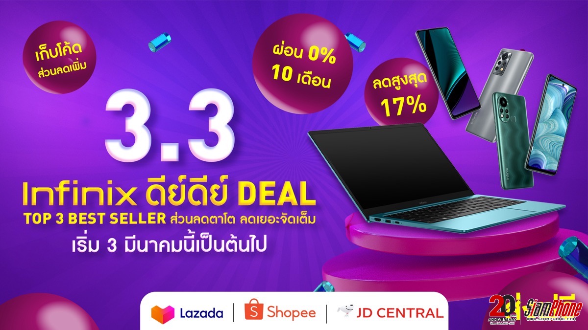 Infinix จัดโปรโมชั่นสุดร้อนแรงตอนรับเทศกาล 3.3 Mega Sale ประจำปี ในร้านค้าอย่างเป็นทางการของ Infinix บน JD Central, Shopee และ Lazada เฉพาะวันที่ 3-5 มีนาคมนี้ เท่านั้น