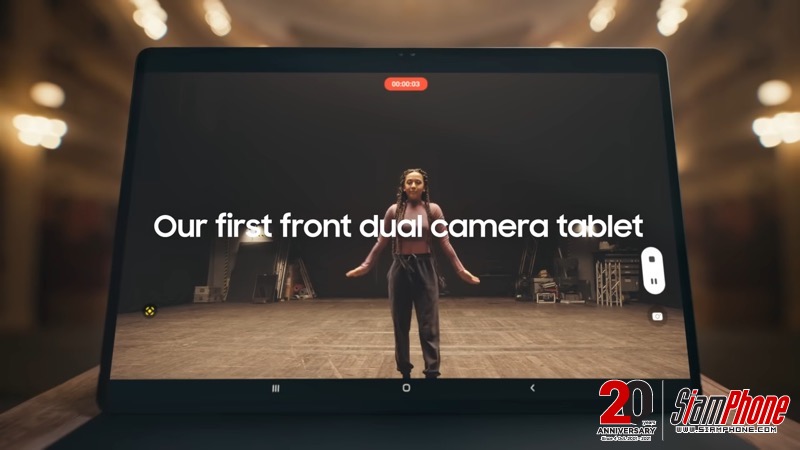 เพื่อตอบโจทย์การทำงานแบบ Work From Anywhere และรองรับการทำงานแบบ Hybrid Working ที่คนต้องทำงานแบบออนไลน์และออฟไลน์ไปควบคู่กัน Galaxy Tab S8 Ultra จึงได้กล้องหน้าคู่แบบมุมกว้างพิเศษ (Ultra-wide front camera) ความละเอียด 12 ล้านพิกเซล และคุณภาพวิดีโอระดับ 4K พร้อมฟีเจอร์การจัดเฟรมอัตโนมัติ (Auto Framing) ที่ช่วยจับภาพผู้ใช้ขณะที่เคลื่อนไหว ตลอดจนไมโครโฟน 3 ตัวและระบบเสียง Dolby Atmos มอบประสบการณ์การประชุม Video Conference ได้อย่างมืออาชีพ นำเสนองานได้อย่างไม่มีติดขัด