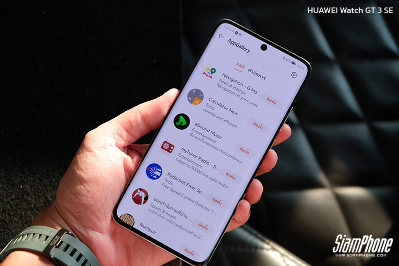 ถ้าหากฟังก์ชั่นในงานที่ HUAWEI Watch GT 3 SE ติดตั้งมาให้จากโรงงานยังจุใจไม่พอ ก็ยังสามารถดาวน์โหลดแอพฯ มาใช้งานเพิ่มได้อีก ซึ่งมี AppGallery สำหรับสมาร์ทวอทช์รองรับในส่วนนี้ ในนั้นจะมีแอพฯ เช่น เครื่องคิดเลข, เกม, ข่าว, โค้ชออกกำลังกาย เป็นต้น สามารถไปเข้าโหมดเพิ่้มเติมได้ใน HUAWEI Health > อุปกรณ์ > AppGallery