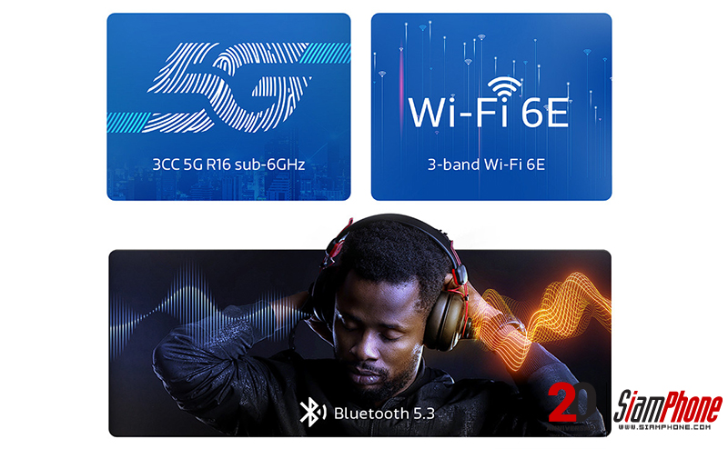 ในขณะที่การเชื่อมต่อ จะรองรับสัญญาณ 5G แบบ Dual ดาวน์โหลดด้วยความเร็วสูงสุด 4.7Gbps, Wi-Fi 6E (2x2), และ Bluetooth 5.3 ทั้งนี้ยังรองรับความละเอียดหน้าจอแบบ FHD+ อัตรา Refresh Rate สูงสุด 180Hz และความละเอียด WQHD+ อัตรา Refresh Rate สูงสุด 120Hz