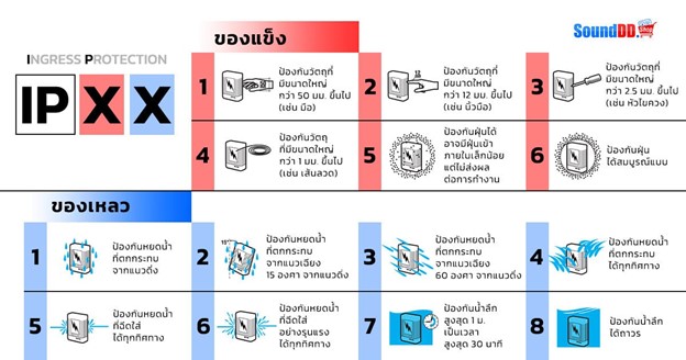 เพื่อให้เห็นภาพได้ชัดขึ้น เพื่อนๆ สามารถดูระดับการป้องกันฝุ่นและของเหลวใน IP (Ingress / International Protection Standard) ระดับต่างๆเพิ่มเติม ดัง Infographic ด้านล่างนี้เลย