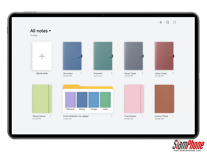 ใน HUAWEI Notes ผู้ใช้งานสามารถดีไซน์หน้าปกสมุดโน้ตได้ตามแบบที่ต้องการ สามารถจัดประเภทโน้ตสร้างเป็นโฟลเดอร์เพิ่มความเป็นระเบียบในการจัดเรียงข้อมูล อีกทั้งยังสามารถปักหมุดโฟลเดอร์ที่สำคัญไว้ที่ด้านบนสุดเพื่อความสะดวกและง่ายก็ต่อการใช้งาน รวมทั้งเพิ่มความรวดเร็วในการค้นหาโน้ตโดยพิมพ์คีย์เวิร์ดคำที่ต้องการในช่องค้นหา ระบบจะทำการค้นหาโน้ตที่ตรงกับคีย์เวิร์ดที่ต้องการให้ทันที