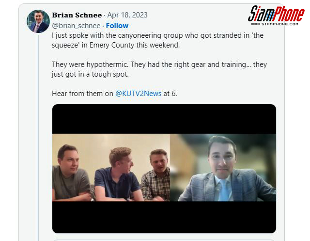 หลังจากที่ทั้ง 3 คนได้รับการช่วยเหลือและรักษาอาการจนดีขึ้นแล้ว ทั้งสามได้ให้ข้อมูลต่อหน้าสื่อเป็นครั้งแรกว่า ณ ขณะนั้น จุดที่พวกเขาตกลงไปนั้นอับสัญญานเซลลูลาร์ แต่ทันใดนั้นพวกเขาก็นึกขึ้นได้ว่าหนึ่งในพวกเขานั้นมีฟีเจอร์ Emergency SOS via Satellite อยู่