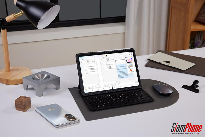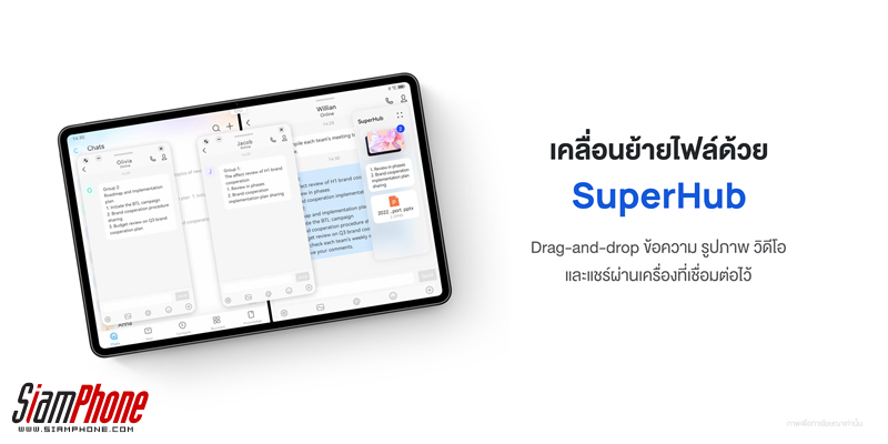 นอกจากนี้ผู้ใช้ HUAWEI MatePad 11 2023 ยังสามารถถ่ายโอนไฟล์ไปยังอุปกรณ์อื่นของหัวเว่ยได้อย่างสะดวกอีกด้วย เช่น คุณยังสามารถคัดลอกไฟล์พรีเซนเทชั่นจาก HUAWEI MatePad 11 2023 ไปยัง SuperHub และแชร์ไปยังสมาร์ทโฟน ผ่านโหมดการเชื่อมต่อ Collaboration Mode ได้อย่างรวดเร็ว ไม่ต้องเสียเวลาประหยัดเวลาเพิ่มเวิร์กโฟลว์ทำงานได้แบบไม่มีสะดุด