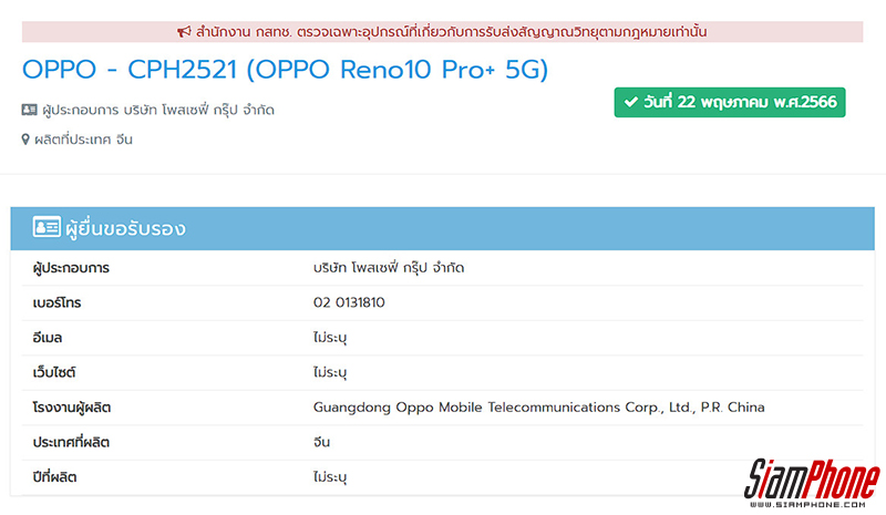 แม้ว่า OPPO Reno9 Series จะไม่มีการวางขายนอกประเทศจีน แต่ OPPO Reno10 Series อาจจะมาเป็นรุ่นที่ออกมาแก้ต่างให้ เพราะล่าสุด OPPO Reno10 Series ทั้ง 3 รุ่นได้ผ่านการรับรองจาก กสทช. ในประเทศไทยเป็นที่เรียบร้อย ทำให้เชื่อว่าทั้ง 3 รุ่นกำลังเตรียมออกมาทำตลาดแบบ Global อย่างแน่นอน