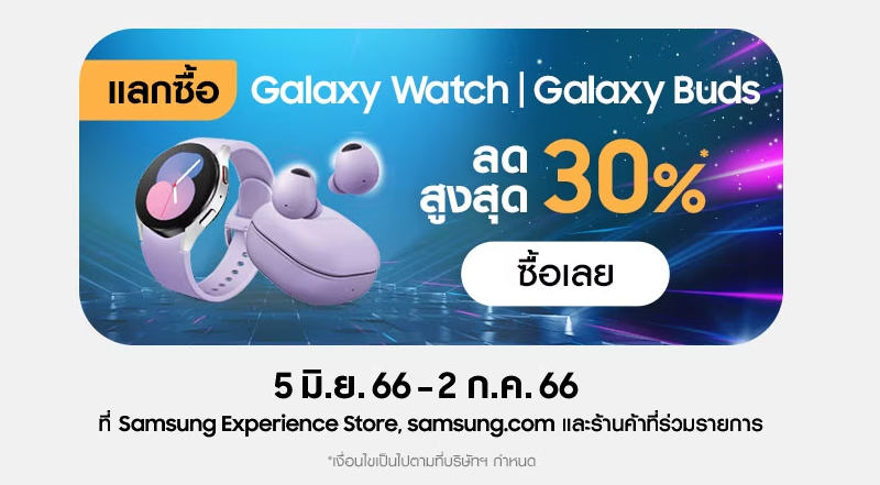 พิเศษ เมื่อซื้อสมาร์ทโฟน A Series ที่ร่วมรายการวันนี้! รับดีลซื้ออุปกรณ์ลดสูงสุดถึง 30% ผู้ที่สนใจสามารถสั่งซื้อได้ผ่าน samsung.com, Samsung Experience Store และร้านค้าที่ร่วมรายการทั่วประเทศ