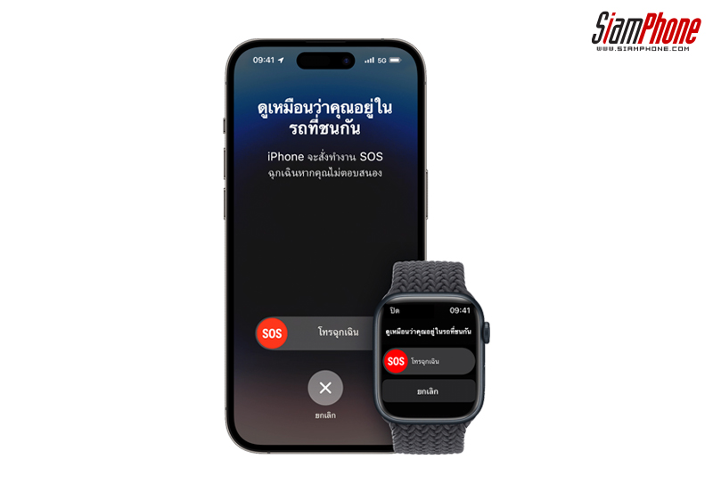 เป้าหมายของการตรวจจับการชนคือการตรวจจับเมื่อมีอุบัติเหตุทางรถยนต์อย่างรุนแรงและระบบจะทำการติดต่อบริการฉุกเฉินให้ในนามคุณ ฟีเจอร์นี้จะให้เวลาผู้ใช้ 20 วินาทีในการตอบสนองต่อการแจ้งเตือน จากนั้นจะทำการเรียกใช้ฟีเจอร์ SOS ฉุกเฉินเพื่อทำการติดต่อบริการฉุกเฉิน จากนั้นจะแชร์ตําแหน่งที่แน่นอนของผู้ใช้ให้กับเจ้าหน้าที่อีกด้วย