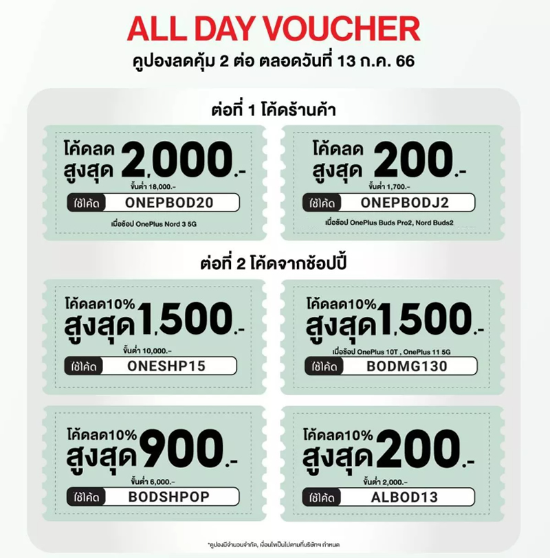 OnePlus ส่งโปรโมชันจัดหนักจัดเต็มกลางปี ใน Brand of The Day ให้คุณได้เป็นเจ้าของสมาร์ทโฟนและอุปกรณ์เสริม ลดสูงสุด 90% พร้อมโค้ดลดสูงสุด 2,000 บาท ใน OnePlus Flagship Store ที่ Shopee วันที่ 13 กรกฎาคมนี้ วันเดียวเท่านั้น!