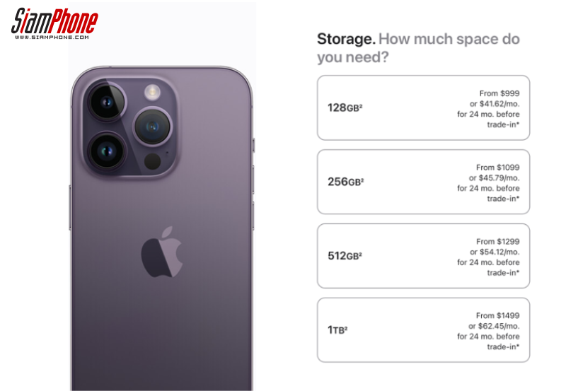ในปัจจุบัน iPhone 14 Pro และ iPhone 14 Pro Max มีมาให้เลือกด้วยกันทั้งหมด 4 ความจุ ตั้งแต่ 128GB จนถึง 1TB