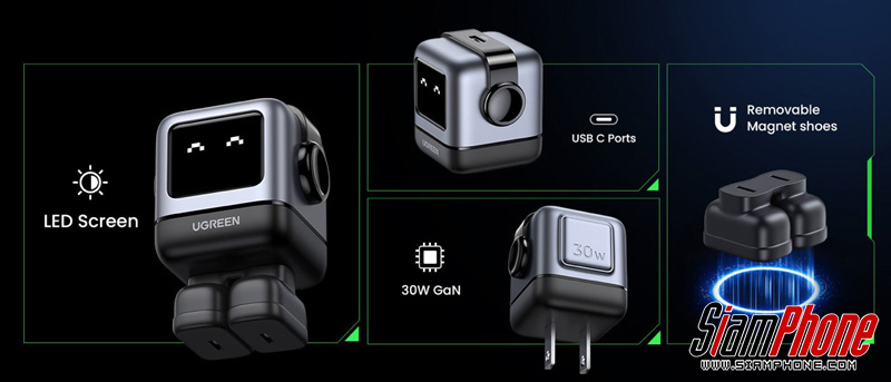 Ugreen เปิดตัว Ugreen Nexode RG GaN มีรูปร่างเหมือนหุ่นยนต์ตัวน้อยแสนน่ารักที่ใช้ความก้าวหน้าของเทคโนโลยี GaNFast เพื่อการชาร์จที่รวดเร็วและปลอดภัย นอกจากจะใช้ชาร์จอุปกรณ์ต่าง ๆ ได้แล้ว ยังนำไปตกแต่งโต๊ะคอมให้ดูสวยงามได้อีกด้วย