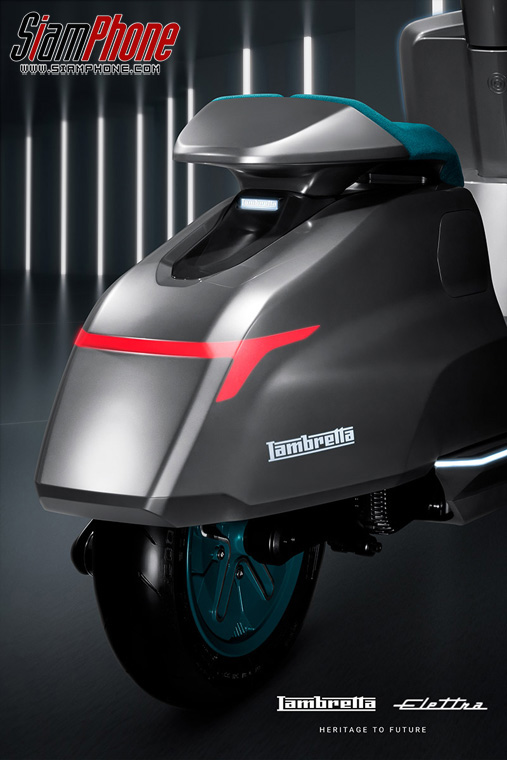 สกู๊ตเตอร์ไฟฟ้า Lambretta Elettra ซ่อมแซมได้ง่าย เนื่องจากสามารถเข้าถึงส่วนด้านหลังทั้งหมดได้โดยการยกตัวถังด้านหลังขึ้น