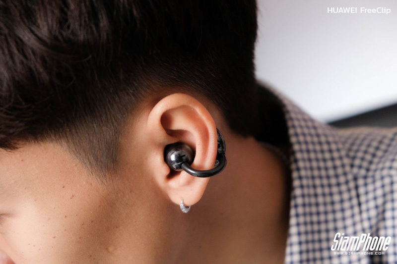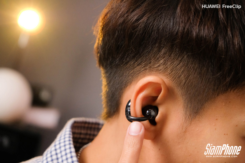 HUWEI FreeClip จะเป็นหูฟังไร้สายแบบ Open-Ear ซึ่งเวลาสวมใส่ จะพบว่าลำโพงไม่ถูกยัดให้กระชับในรูหูของผู้ใช้ แต่เมื่อฟังเสียงเพลง หรือสนทนากับคู่สาย เสียงก็ไม่เล็ดลอดออกมา