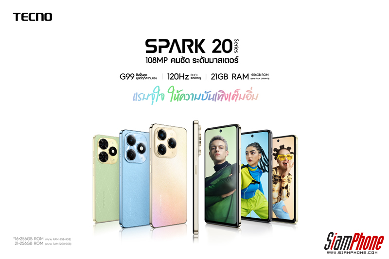 เตรียมตัวให้พร้อมแล้วมาจับจองเป็นเจ้าของได้ก่อนใคร ! TECNO SPARK 20 Series มีกำหนดเปิดตัวในประเทศไทยอย่างเป็นทางการวันที่ 28 มกราคม 2567 โดยรุ่น SPARK 20 Pro RAM/ROM 21GB+256GB จะนำขบวนมาก่อน ส่วนรุ่นอื่นๆ จะมีจำหน่ายในเดือนถัดไป วางจำหน่ายผ่านช่องทางออนไลน์ทั้ง TikTok, Shopee และ Lazada รวมถึงตัวแทนจำหน่ายทั่วประเทศ ติดตามโปรโมชันสุดพิเศษ และข่าวสารเพิ่มเติมได้ที่ Facebook : Tecno Mobile Thailand
