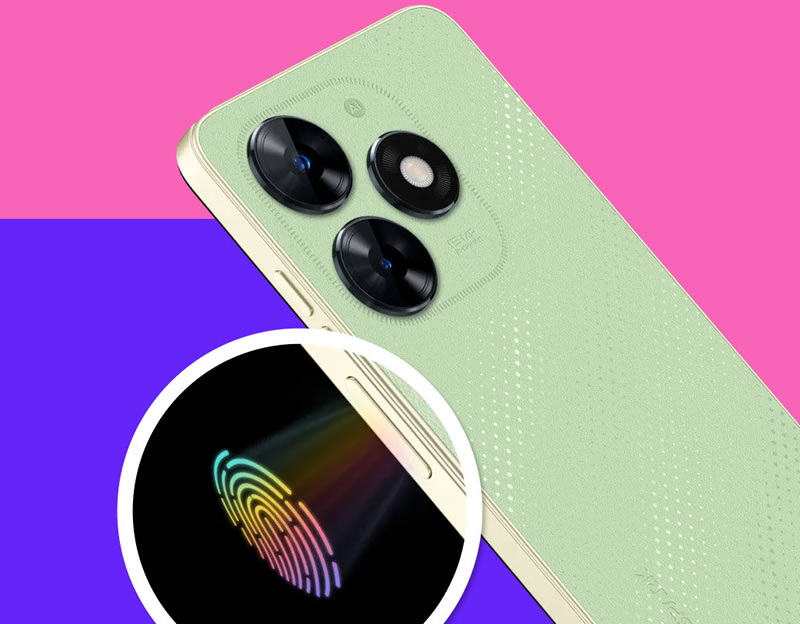 TECNO SPARK GO 2024 ด้านข้างตัวเครื่องที่ปุ่ม Power มีเซนเซอร์สแกนลายนิ้วมือ สามารถบันทึกได้สูงสุด 5 ลายนิ้วมือ มาพร้อมลำโพงสเตอริโอเทคโนโลยี dts ทางแบรนด์เคลมว่าด้วยฟีเจอร์ Volume Plus สามารถเร่งพลังเสียงให้ดังกว่าเดิมได้อีก 400% ด้านแบตเตอรี่มีความจุ 5000mAh ชาร์จเร็ว 10 วัตต์ นอกจากนี้มีฟีเจอร์สร้าง RAM เสมือนโดยขยาย RAM ได้ 3GB/4GB เพิ่มความเร็วในการประมวลผล