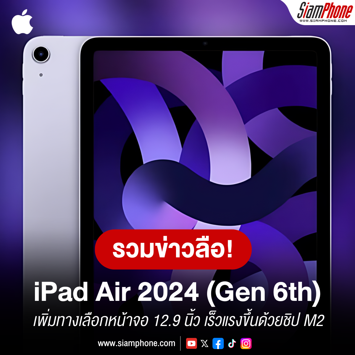 ทาง Apple ได้ประกาศกิจกรรมสำคัญในวันที่ 7 พฤษภาคม 2024 เป็นที่เรียบร้อย ซึ่งคาดการณ์กันว่าจะเป็นงานเปิดตัวของ iPad Air รุ่นใหม่ หรือ iPad Air 2024 เนื่องจากข่าวหลุดข่าวลือที่ออกมาก่อนหน้ากระแสแรงเหลือเกิน ทำให้วันนี้ทางเราจะมาสรุปข่าวลือต่างๆ ให้ชมกันว่า หลังจากรอคอยกันมา 2 ปี iPad Air 2024 จะมีอะไรน่าสนใจบ้าง