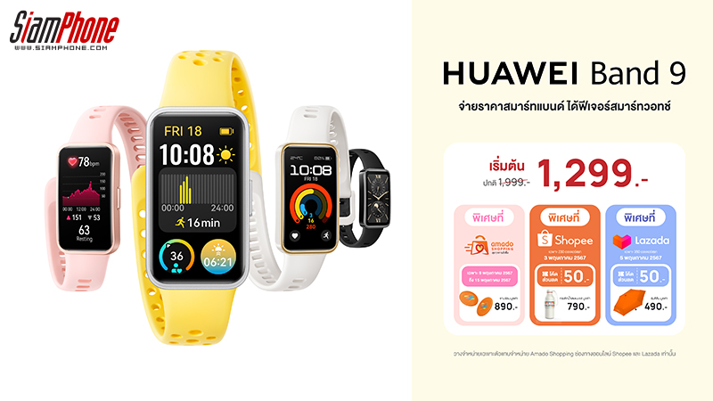 กดใส่ตระกร้ารอได้เลยกับ HUAWEI Band 9 ในราคาเริ่มต้นเพียง 1,299 บาท จากราคาปกติ 1,999 บาท