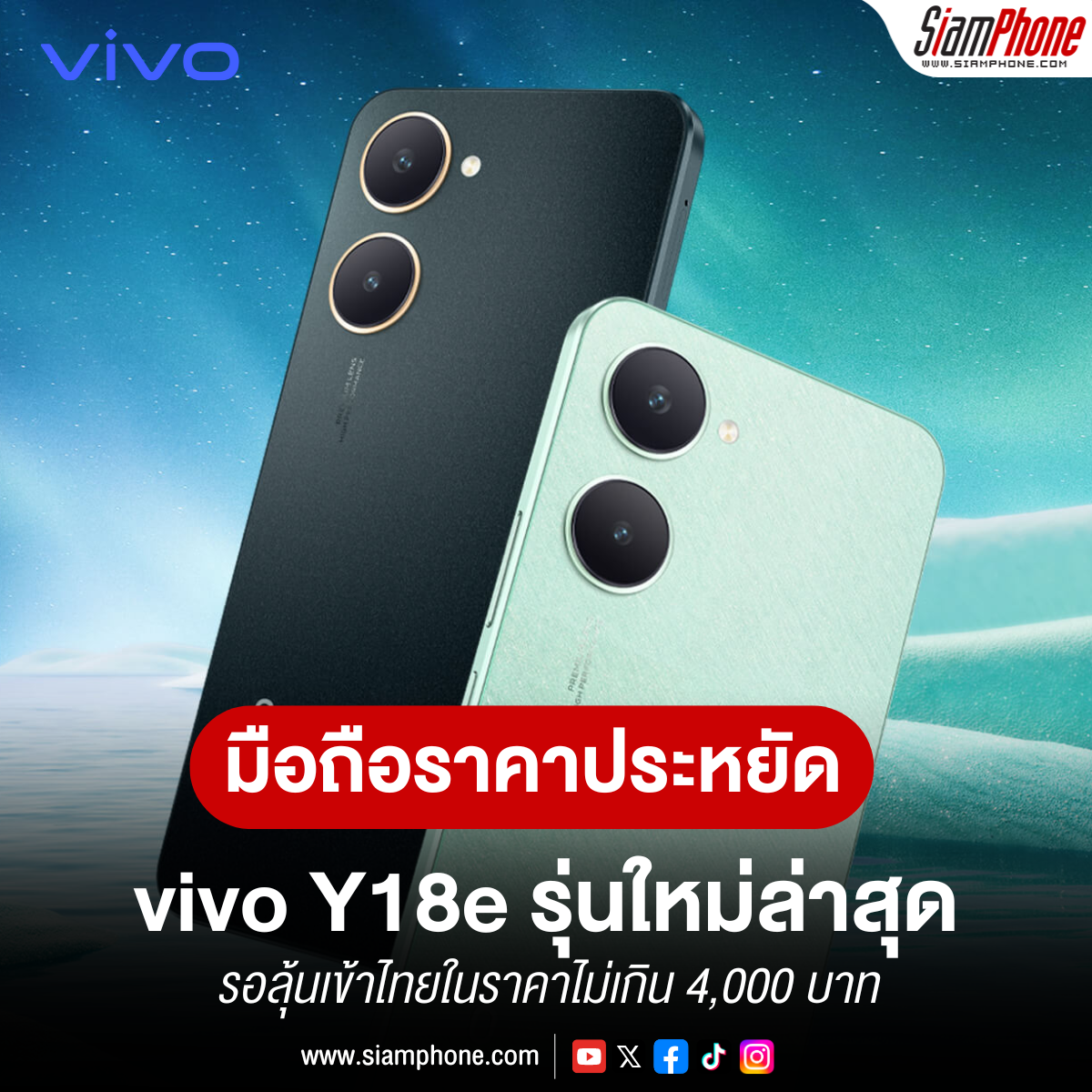 vivo Y18e คาดว่าจะวางจำหน่ายอย่างเป็นทางการช่วงสิ้นเดือนพฤษภาคม น่าจะมีราคาไม่เกิน 4,000 บาท รอลุ้นราคาและโปรโมชั่นไปพร้อมกัน