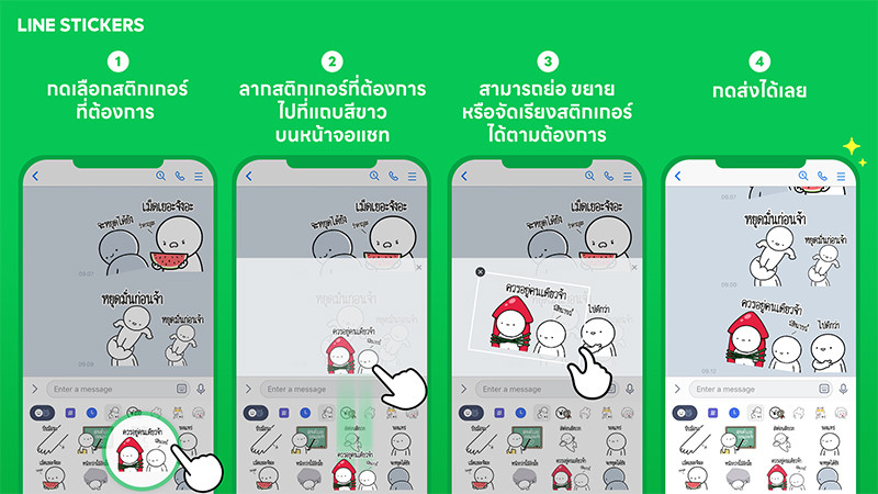 3 รูปแบบการใช้งานง่ายๆ เพื่อเพิ่มความสนุกของฟีเจอร์ คอมบิเนชัน สติกเกอร์ นี้ ได้แก่