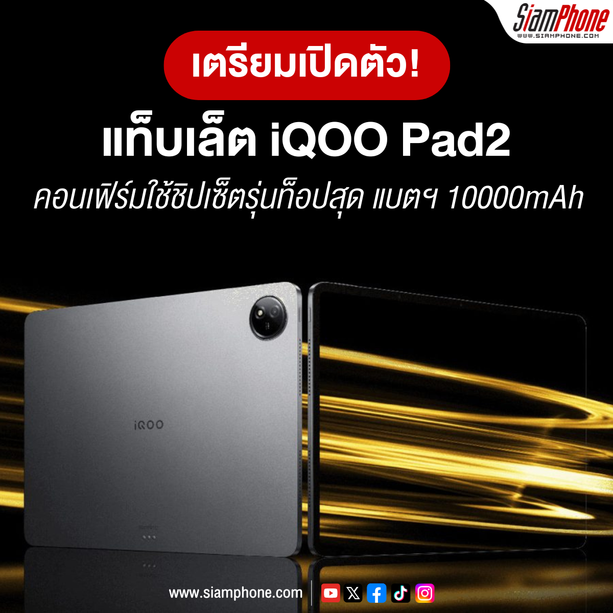 iQOO เตรียมเปิดตัวแท็บเล็ตรุ่นใหม่เร็วๆ นี้ ในวันที่ 31 พฤษภาคม โดยเป็นแท็บเล็ต iQOO Pad2 แบ่งเป็นสองรุ่น คือ iQOO Pad2 และ iQOO Pad2 Pro แต่ละรุ่นได้มีการเปิดเผยสเปคมาบ้างแล้ว ต้องบอกว่า น่าสนใจมาก เพราะใช้ชิปเซ็ตรุ่นท็อปเป็นหัวใจในการประมวลผล กับแบตเตอรี่ที่มีความจุเยอะมาก เรียกได้ว่าต้องโฟกัสที่การดีไซน์ตัวเครื่องเลยว่ามีขนาดหนามากเพียงใด รวมถึงน้ำหนักของตัวเครื่อง รายละเอียดเพิ่มเติมดังนี้