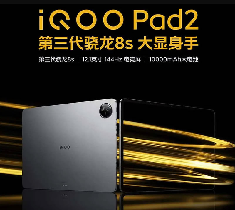 iQOO Pad2 มีหน้าจอขนาด 12.1 นิ้ว ความละเอียด 2800 x 1968 พิกเซล อัตรารีเฟรชเรท 144Hz ชิปเซ็ตประมวลผล Snapdragon 8s Gen 3 มี RAM 8GB/12GB กับพื้นที่เก็บข้อมูลภายใน 128GB/512GB โดยมีแบตเตอรี่ความจุ 10000mAh เทคโนโลยีชาร์จเร็ว 44 วัตต์ ด้านกล้องหลังมีความละเอียด 8 ล้านพิกเซล กล้องหน้า 5 ล้านพิกเซล