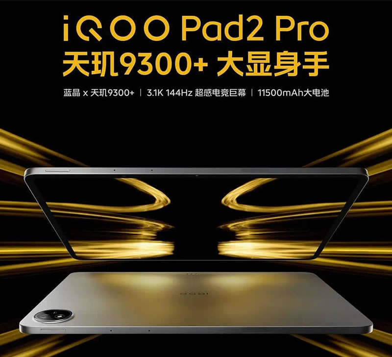 iQOO Pad2 Pro มีหน้าจอขนาด 13 นิ้ว ความละเอียด 3096 x 2064 พิกเซล อัตรารีเฟรชเรท 144Hz ชิปเซ็ตประมวลผล Dimensity 9300+ มี RAM 8GB/16GB กับพื้นที่เก็บข้อมูลภายใน 256GB/512GB โดยมีแบตเตอรี่ความจุ 11500mAh เทคโนโลยีชาร์จเร็ว 66 วัตต์ ด้านกล้องหลังมีความละเอียด 13 ล้านพิกเซล กล้องหน้า 8 ล้านพิกเซล