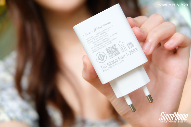 สมาร์ทโฟน vivo Y28 มีแบตเตอรี่ความจุ 6000mAh ชาร์จเร็ว 44 วัตต์ และไฮไลท์เลย คือ แถมอะแดปเตอร์ชาร์จเร็วให้ด้วย 44 วัตต์ ไม่ต้องไปหาซื้อที่ไหน ส่วนรุ่นน้อง vivo Y18 อาจต้องคิดหน่อย เพราะไม่แถมอะแดปเตอร์มาให้ ด้านแบตเตอรี่มีความจุ 5000mAh ชาร์จเร็ว 15 วัตต์