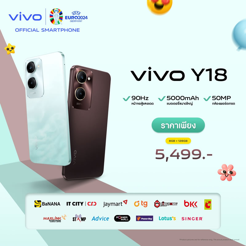vivo ประเทศไทยเปิดตัวสองสมาร์ทโฟนรุ่นใหม่ล่าสุด ในราคาเย้ายวนใจ เหมาะใช้งานทั่วไป เล่นเกมเพลินๆ ได้ จะใช้แอปฯ ธนาคาร ถ่ายรูปทั่วไปก็ดีงาม โดยคู่หู vivo Y18 กับ vivo Y28 พร้อมวางจำหน่ายแล้วที่ร้านค้าชั้นนำทั่วประเทศ ทั้งสองรุ่นพร้อมมอบประสบการณ์การใช้งานลื่นไหล ด้านแบตเตอรี่ก็มีระบบป้องกันความปลอดภัยของแบตเตอรี่ และขณะชาร์จ ช่วยยืดอายุแบตฯ ให้ยาวนานมากยิ่งขึ้น ด้านหน้าจอแสดงผลมีมาตรฐานป้องกันแสงสีฟ้า ช่วยถนอมสายตาขณะใช้งานจาก TÜV Rheinland พร้อมอัตรารีเฟรชเรท 90Hz เล่นเกมได้เพลินมากยิ่งขึ้น
