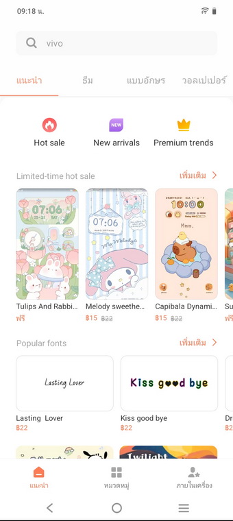 การเลือกธีม/วอลเปเปอร์/ไอคอน