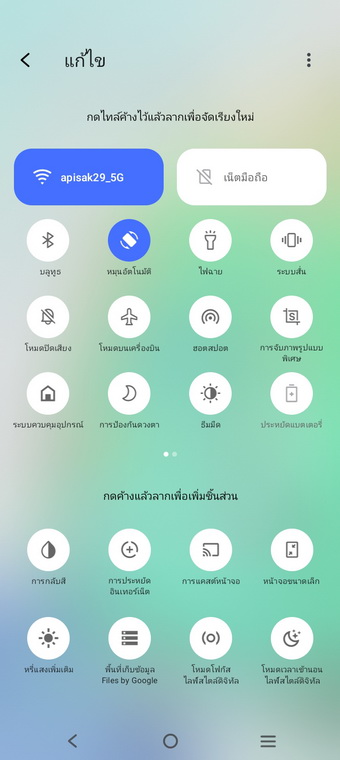 เรียกใช้งานด้วยการปัดลงมาจากหน้าจอด้านบน การปัดครั้งแรกจะเป็นเมนูที่จำเป็นต่อการใช้งานเท่านั้น เช่น WiFi, Bluetooth, ไฟฉาย, โหมดประหยัดพลังงาน เป็นต้น หากเลื่อนปัดสองครั้งจะรวมเมนูทางลัดด่วนทั้งหมด และคุณก็เลือกได้ว่าจะให้เมนูใดอยู่ตรงไหน แค่กดปุ่มแก้ไขที่ไอคอนดินสอบริเวณมุมขวาบน