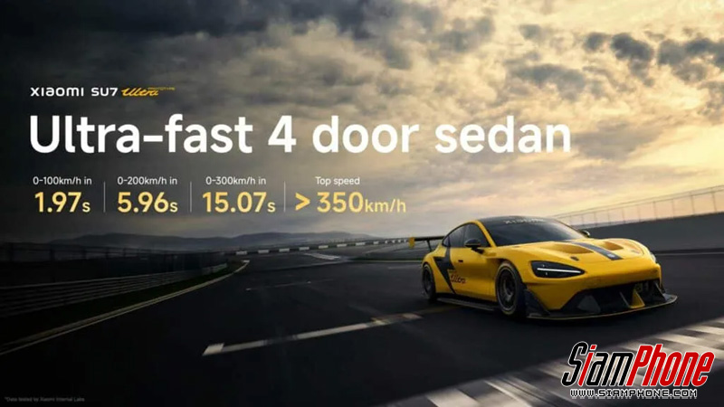 Xiaomi SU7 Ultra ถูกออกแบบมาเพื่อเป็นรถสปอร์ตไฟฟ้าที่เร็วที่สุดในโลก ด้วยขุมพลังมอเตอร์ไฟฟ้า 4 ตัว ที่ให้กำลังสูงสุดถึง 1,548 แรงม้า ทำให้สามารถเร่งความเร็วจาก 0-100 กิโลเมตรต่อชั่วโมง ได้ภายในเวลาเพียง 1.97 วินาที และทำความเร็วสูงสุดได้ถึง 350 กิโลเมตรต่อชั่วโมง นอกจากนี้ ยังมาพร้อมแบตเตอรี่ CATL รุ่นใหม่ล่าสุด ที่รองรับการชาร์จเร็วสุดขีด ชาร์จเต็มภายใน 12 นาทีเท่านั้น