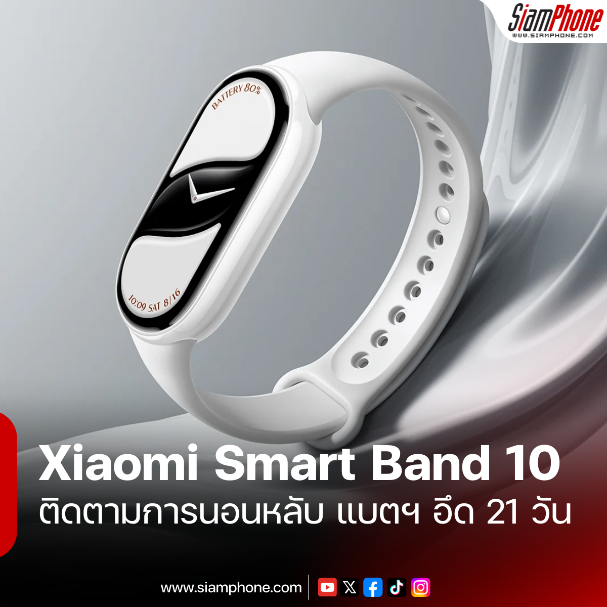 Xiaomi ตอกย้ำความเป็นผู้นำในตลาดอุปกรณ์สวมใส่อีกครั้ง ด้วยการเปิดตัว Xiaomi Smart Band 10 สมาร์ทแบนด์รุ่นใหม่ล่าสุด ที่มาพร้อมการอัปเกรดครั้งใหญ่ในทุกมิติ ทั้งหน้าจอ AMOLED ที่ใหญ่และสว่างขึ้น, การออกแบบตัวเรือนที่พรีเมียม, ฟีเจอร์ติดตามสุขภาพที่แม่นยำกว่าเดิม โดยเฉพาะการติดตามการนอนหลับที่ได้รับการรับรองจากหลายสถาบัน และแบตเตอรี่ที่ใช้งานได้ยาวนานถึง 21 วัน