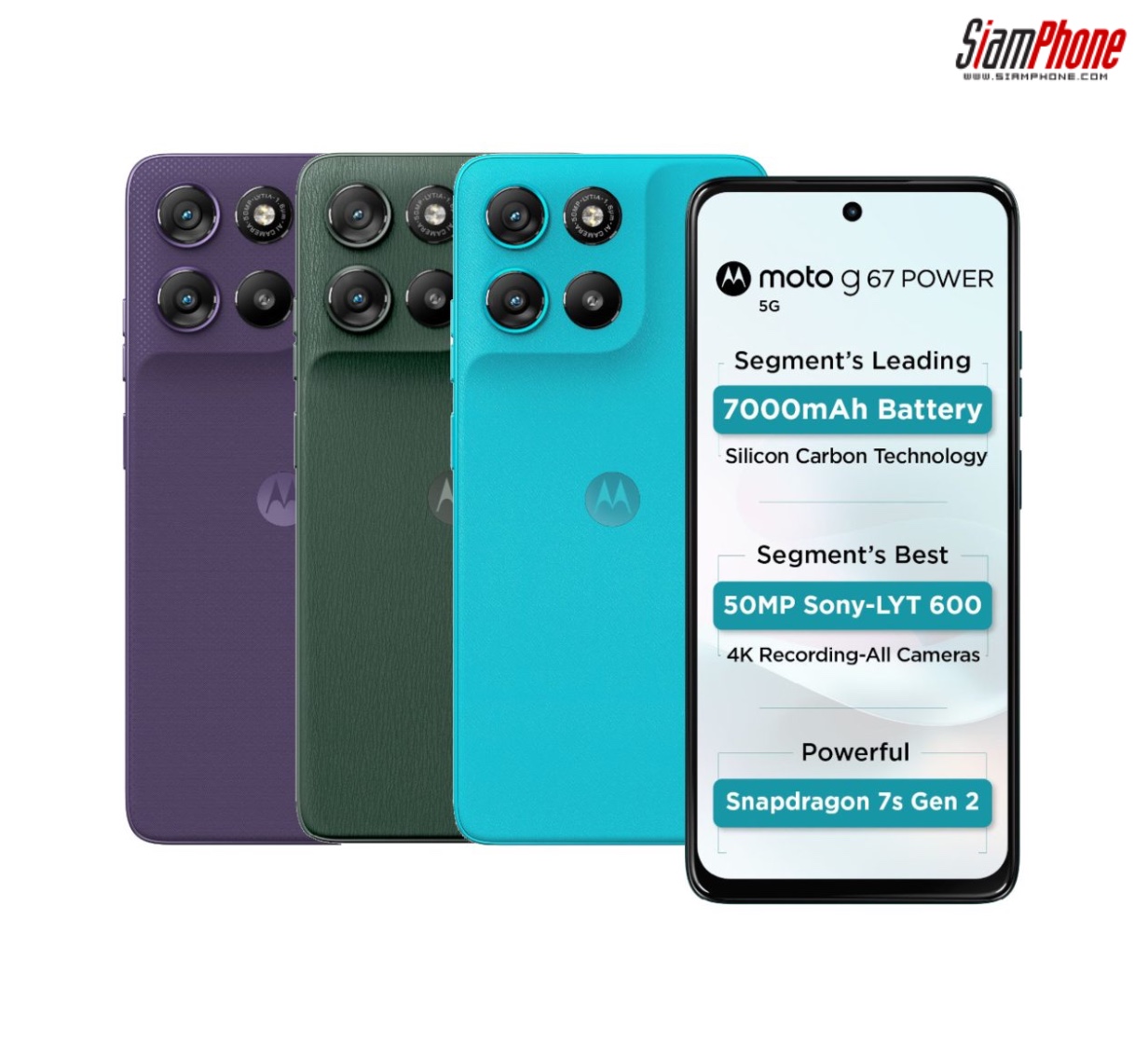 moto G67 Power เป็นรุ่นที่ออกแบบมาเพื่อความอึดทนทานโดยเฉพาะ ด้วยแบตเตอรี่ขนาดใหญ่ 7,000mAh ที่รองรับการใช้งานหนักทั้งวันอย่างสบาย แม้จะใช้ถ่ายรูป เดินทางใช้แผนที่ เล่นโซเชียล หรือสตรีมวิดีโอต่อเนื่องก็ตาม พร้อมทั้งใช้ชิปฯ Snapdragon 7s Gen 2 ที่ประหยัดพลังงานและให้ประสิทธิภาพเพียงพอสำหรับงานประจำวัน หน้าจอรีเฟรชเรทสูงช่วยให้ใช้งานไหลลื่นขึ้น ตัวเครื่องยังมีความแข็งแรงแบบมาตรฐานกันกระแทก เหมาะสำหรับผู้ที่เดินทางบ่อยหรือทำกิจกรรมกลางแจ้ง ต้องการสมาร์ตโฟนที่อยู่กับคุณได้เต็มวันโดยไม่หมดกลางทาง
