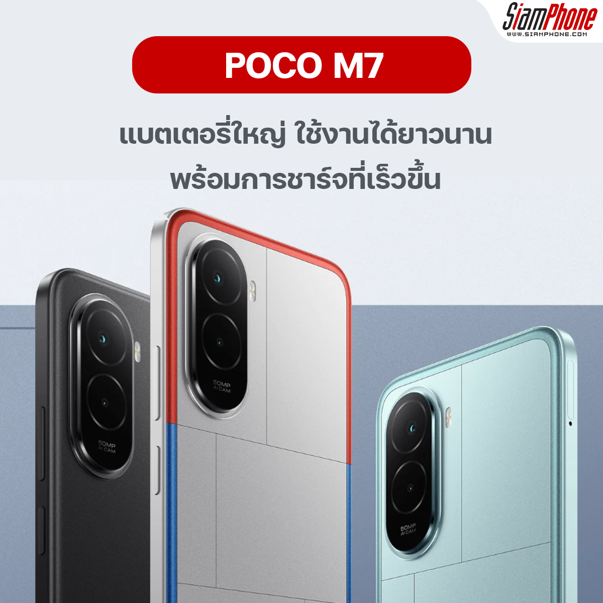POCO M7 สมาร์ทโฟนรุ่นใหม่ล่าสุดที่ผสมผสานประสบการณ์ความบันเทิงอันเหนือระดับเข้ากับประสิทธิภาพที่ได้รับการอัปเกรดพร้อมดีไซน์ที่ล้ำสมัย POCO ได้รังสรรค์สมาร์ทโฟนที่ตอบโจทย์คนรุ่นใหม่ได้อย่างดีเยี่ยม POCO M7 วางจำหน่ายในประเทศไทยอย่างเป็นทางการแล้ววันนี้โดยมอบราคาพิเศษให้แก่ลูกค้าที่ซื้อสินค้าในระหว่างวันที่ 19 สิงหาคม 2568 - 31 สิงหาคม 2568 อีกด้วย