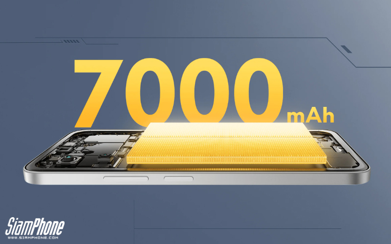 POCO M7 ให้แบตเตอรี่ขนาดใหญ่จุใจ 7000mAh (typ) และยังมาพร้อมกับเทคโนโลยีแบตเตอรี่ซิลิคอน-คาร์บอน 5% อันล้ำสมัยที่ถูกออกแบบมาเพื่อไลฟ์สไตล์ที่ไม่หยุดนิ่งและสามารถใช้งานได้นานสูงสุด 2 วันสำหรับการใช้งานในชีวิตประจำวัน เทคโนโลยีซิลิคอน-คาร์บอนระดับเรือธงนี้อัดแน่นไปด้วยความหนาแน่นของพลังงานที่เพิ่มขึ้นในดีไซน์ที่กะทัดรัดพร้อมมอบความทนทานที่ยาวนานมากยิ่งขึ้น โดยสามารถเล่นวิดีโอได้ยาวนานสูงสุด 28 ชั่วโมง หรือโทรได้นานถึง 46 ชั่วโมง นอกจากนี้ตัวอุปกรณ์ยังเสริมประสิทธิภาพด้วยชิป BatteryExtender จึงทำให้ POCO M7 มีระบบปิดเครื่องด้วยแรงดันไฟต่ำเพียง 3.0V จึงช่วยป้องกันความเสียหายของแบตเตอรี่และมอบประสิทธิภาพการทำงานของอุปกรณ์ได้อย่างดีที่สุด ทั้งยังเล่นวิดีโอได้ยาวนานสูงสุด 142 ชั่วโมงแม้ในสภาพอุณหภูมิที่ -20°C ทั้งนี้เมื่อแบตเตอรี่ใกล้หมด แบตเตอรี่เพียง 1% ที่เหลือจะยังคงให้คุณสามารถโทรได้นานถึง 64 นาที หรือสแตนด์บายได้นานถึง 10 ชั่วโมงเลยทีเดียวจึงช่วยให้คุณไม่พลาดในทุกช่วงเวลา