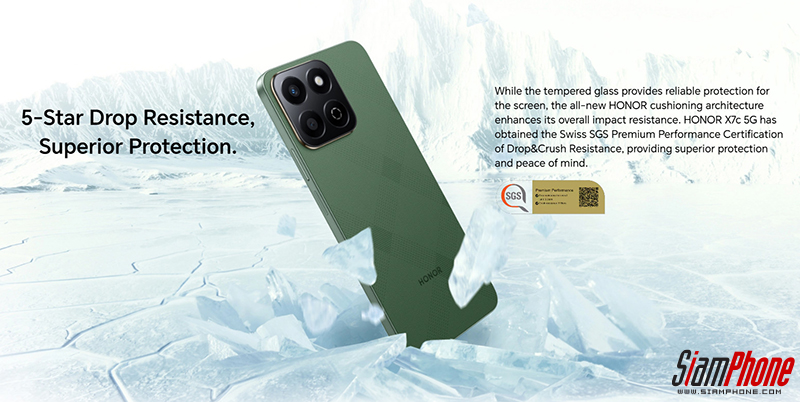 HONOR X7c 5G สมาร์ตโฟนระดับกลาง รองรับเครือข่าย 5G รุ่นใหม่จากแบรนด์ HONOR ถูกเปิดตัวอย่างเป็นทางการในประเทศอินเดีย โดยมาสานต่อ HONOR X7c 4G ที่ขายไปในช่วงปลายปี 2024 ที่ผ่านมา สำหรับ HONOR X7c 5G ยังให้ความทนทานระดับสูง ได้มาตรฐานการตกหล่นระดับ 5 ดาวจาก SGS และได้มาตรฐานกันฝุ่นกันน้ำ IP64 อยู่ในน้ำได้นาน 3 นาที