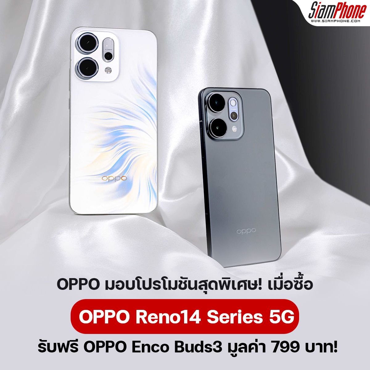 เมื่อซื้อ OPPO Reno14 5G และ OPPO Reno14 Pro 5G ระหว่างวันที่ 22 สิงหาคม – 31 สิงหาคม 2568 นี้ รับทันทีของสมนาคุณ หูฟังไร้สาย OPPO Enco Buds3 มูลค่า 799 บาท ที่ OPPO Brand Shop ที่ร่วมรายการ ห้ามพลาดโอกาสเป็นเจ้าของสมาร์ตโฟนสุดชิคพร้อมของแถมสุดคุ้ม!
