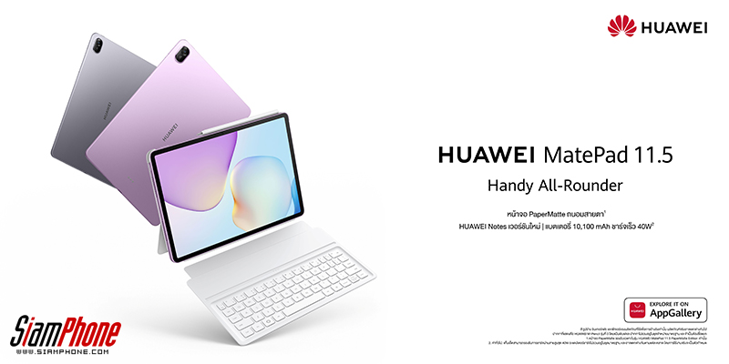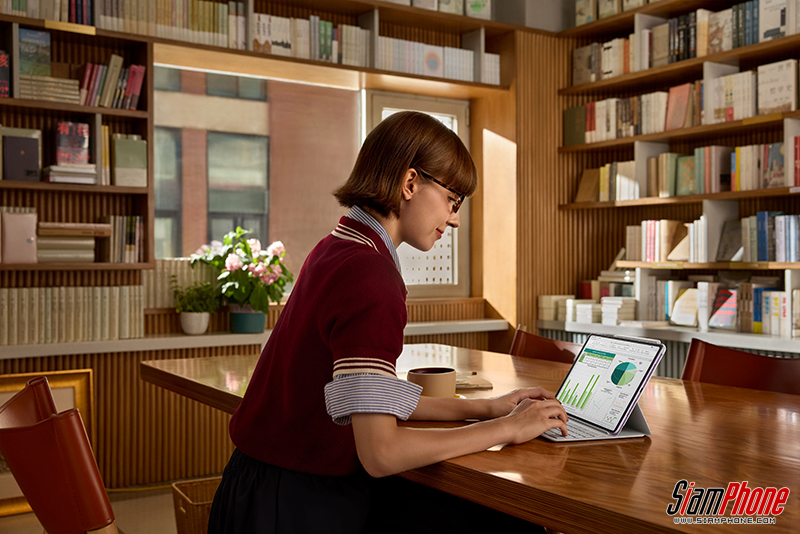 HUAWEI MatePad 11.5” 2025 โดดเด่นด้วยคุณสมบัติแบบแท็บเล็ตที่พกพาได้สะดวก ดีไซน์สวย น้ำหนักเบาเพียง 515 กรัม แต่มอบประสบการณ์ใช้งานระดับพีซี เมื่อใช้คู่กับคีย์บอร์ดและโปรแกรม PC-Level WPS Office ที่ให้คุณจัดการงานไม่ว่าจะเป็นตาราง พรีเซนเทชัน หรือเอกสาร ด้วยฟังก์ชันที่เทียบเท่ากับคอมพิวเตอร์ จอภาพเทคโนโลยี PaperMatte ยังให้สัมผัสเหมือนกระดาษ ช่วยลดแสงสะท้อนและแสงจ้าได้ถึง 99% ช่วยให้เห็นหน้าจอได้ชัดเจนแม้ในที่แสงจ้า จึงลดความเมื่อยล้าสายตา รองรับการใช้งานคู่กับปากกา HUAWEI M-Pencil รุ่นที่ 3 ให้คุณสร้างสรรค์ผลงานได้ไร้ขีดจำกัดทั้งบน HUAWEI Notes แอปจดบันทึกอัจฉริยะที่มาพร้อมฟีเจอร์ AI Handwriting Enhancement ช่วยปรับลายมือให้สวยงาม และ Resource Center ที่มีรูปแบบเอกสาร กระดาษ และสติกเกอร์ให้เลือกมากมาย รวมถึงแอป GoPaint แอปวาดภาพที่ให้คุณปลดปล่อยจินตนาการได้อย่างเต็มที่ นอกจากนี้ยังหมดห่วงด้วยแบตเตอรี่ขนาดใหญ่ 10,100 mAh ใช้งานได้ยาวนานตลอดวัน และรองรับชาร์จไว 40W HUAWEI SuperCharge ตอบโจทย์การทำงานของคนยุคใหม่ได้อย่างคล่องตัวในทุกที่