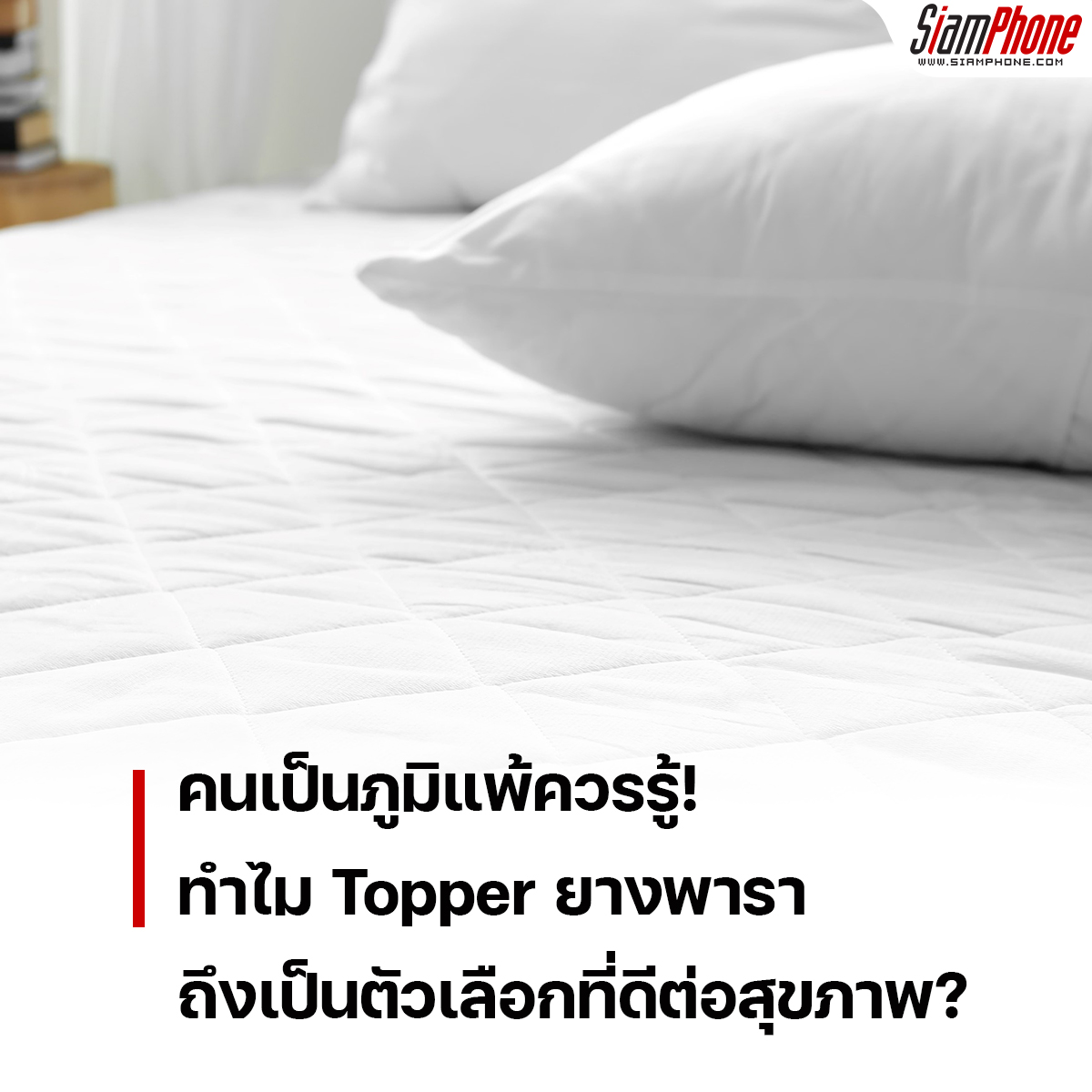 เห็นได้ชัดเลยว่าปัญหาภูมิแพ้ไม่ใช่เรื่องเล็ก โดยเฉพาะเมื่อมันรบกวนการนอนของคนในทุกๆ คืน ดังนั้นการเลือก Topper ยางพารา จึงไม่ใช่แค่เรื่องของความสบาย แต่เป็นการลงทุนเพื่อสุขภาพของคุณในระยะยาว ทั้งลดโอกาสแพ้ ป้องกันไรฝุ่น และช่วยให้นอนหลับสนิทมากขึ้นอีกด้วย รู้อย่างนี้แล้ว อย่าลืมสำรวจที่นอนให้ดีว่าสิ่งที่ใช้อยู่ตอนนี้เหมาะสมหรือยัง หากยังลองเปิดใจให้ Topper ยางพาราเพื่อเพิ่มประสิทธิภาพการนอน ให้คุณสามารถหลับสนิทและมีการนอนที่มีคุณภาพที่ดีที่สุด