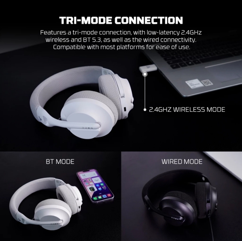 ในยุคที่เกมเมอร์หนึ่งคนไม่ได้เล่นเกมแค่บน PC อีกต่อไป การมองหาหูฟังที่ "ตัวเดียวจบ" ใช้ได้กับทุกแพลตฟอร์มจึงกลายเป็นโจทย์ใหญ่ FANTECH TAMAGO II WHG04 เข้าใจปัญหานี้ดีและให้คำตอบที่สมบูรณ์แบบ ด้วยการเชื่อมต่อถึง 3 โหมด (Tri-Mode) ไม่ว่าจะเป็น 2.4GHz Wireless สำหรับการเล่นเกมที่ต้องการความเสถียรและดีเลย์ต่ำสุดๆ, Bluetooth 5.3 สำหรับเชื่อมต่อกับสมาร์ตโฟนหรือแท็บเล็ตได้ง่ายๆ และสาย 3.5 มม. สำหรับใช้งานกับทุกอุปกรณ์ที่มีช่องเสียบหูฟัง เรียกว่ามีเครื่องเล่นเกมกี่เครื่องก็เอาอยู่!