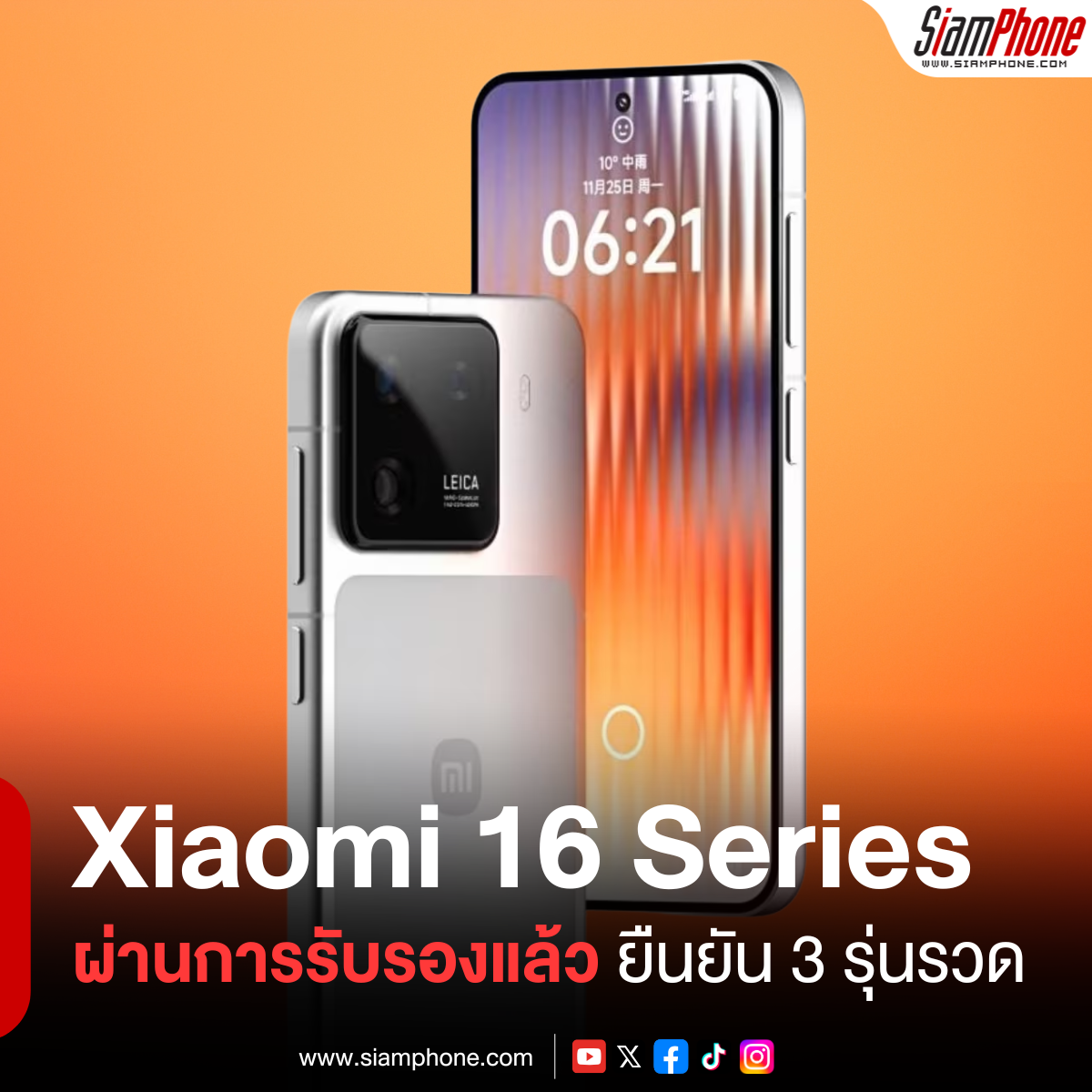 สิ้นสุดการรอคอย สัญญาณชัดเจนว่าเรือธงปลายปีของ Xiaomi กำลังจะมาถึงเร็วกว่าที่คิด เมื่อสมาร์ตโฟนในซีรีส์ Xiaomi 16 ได้ผ่านการรับรอง 3C ในประเทศจีนเป็นที่เรียบร้อยแล้ว เผยไต๋ว่าคราวนี้อาจมาพร้อมกันถึง 3 รุ่น แถมยังใจป้ำให้ชาร์จเร็ว 100W มาทุกตัวไม่ว่าจะรุ่นเล็กหรือใหญ่