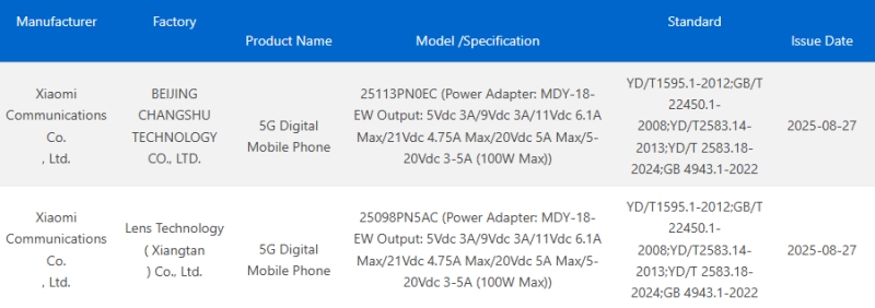 จุดที่ทำให้แฟนๆ ต้องร้องว้าวคือ ทุกรุ่นที่ผ่านการรับรองนั้นมาพร้อมกับอะแดปเตอร์รหัส MDY-18-EW ที่รองรับกำลังไฟสูงสุดถึง 100W (20V/5A) นี่หมายความว่า Xiaomi จะไม่กั๊กสเปคอีกต่อไป ไม่ว่าคุณจะซื้อรุ่นเริ่มต้น รุ่น Pro หรือรุ่น Pro Mini ก็จะได้สัมผัสกับความเร็วในการชาร์จระดับท็อปเหมือนกันทั้งหมด ถือเป็นการเคลื่อนไหวที่น่าจะสร้างแรงสั่นสะเทือนให้คู่แข่งพอสมควร