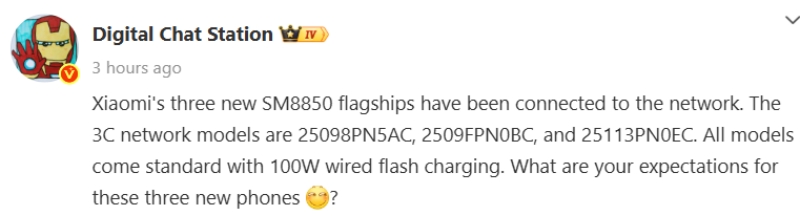 ข้อมูลล่าสุดจากฐานข้อมูล 3C ของจีน ได้ปรากฏรายชื่อสมาร์ตโฟน 3 หมายเลขรุ่นใหม่ ได้แก่ 25113PN0EC, 25098PN5AC, และ 2509FPN0BC ซึ่งคาดการณ์กันว่าคือ Xiaomi 16, Xiaomi 16 Pro, และรุ่นเซอร์ไพรส์อย่าง Xiaomi 16 Pro Mini (ชื่อชั่วคราว) ตามลำดับ