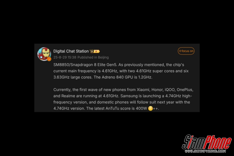 การมาของชิปเซ็ตใหม่จาก Qualcomm ในครั้งนี้ไม่เพียงแต่จะสร้างความฮือฮาด้วยคะแนนที่น่าทึ่ง แต่ยังเป็นการยืนยันถึงการเปลี่ยนชื่อชิปเซ็ตเรือธงอีกครั้ง จากเดิมที่คาดการณ์กันว่าจะใช้ชื่อ Snapdragon 8 Elite Gen 2 กลับกลายเป็นการกระโดดข้ามมาเป็น Snapdragon 8 Elite Gen 5 ซึ่งอาจเป็นการส่งสัญญาณถึงการอัปเกรดครั้งใหญ่ที่ทิ้งห่างจากรุ่นก่อนหน้าไปหลายขุม