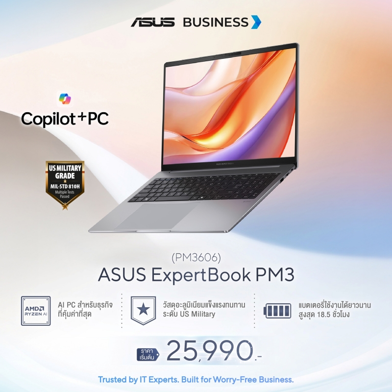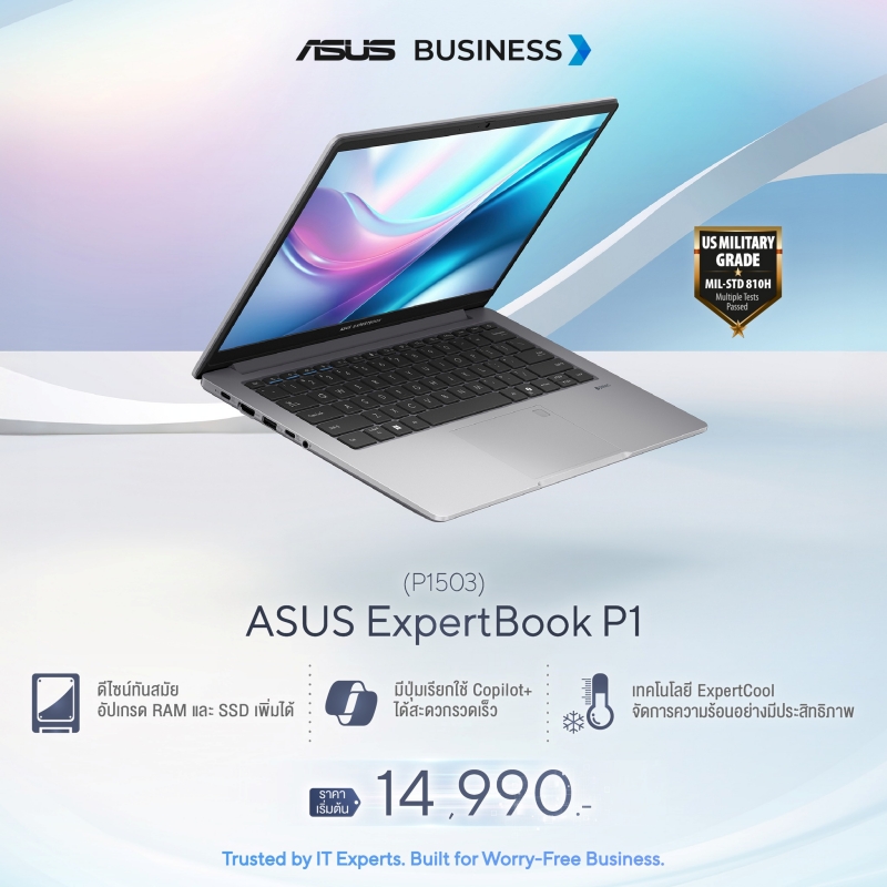 อึด ถึก ทน เพื่อธุรกิจสายลุย: มาพร้อมดีไซน์ทันสมัย น้ำหนักเบา พกพาสะดวก เสริมความสะดวกด้วยปุ่ม Copilot+ และเทคโนโลยีระบายความร้อน ExpertCool