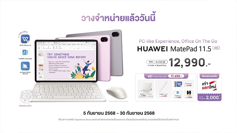 HUAWEI MatePad 11.5” 2025 วางจำหน่ายแล้วในราคาสุดคุ้มค่