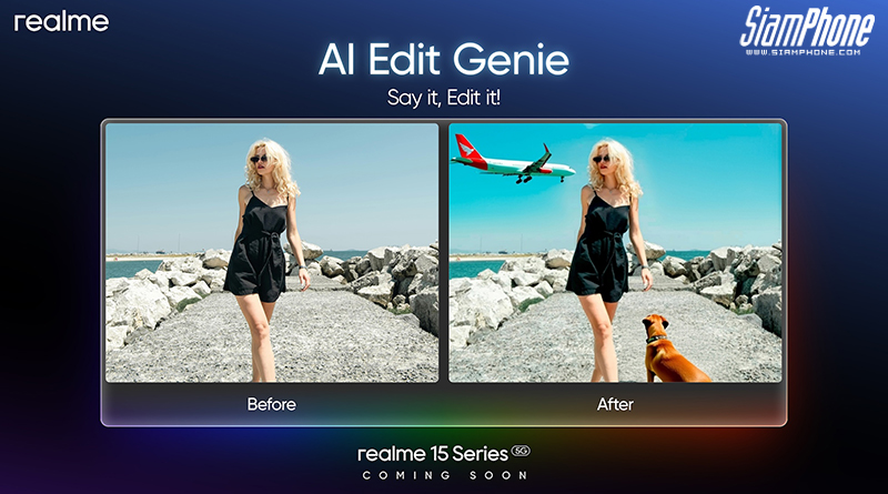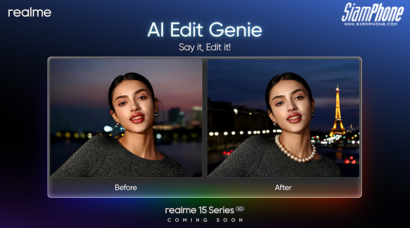 เตรียมสัมผัสฟีเจอร์ AI Edit Genie ครั้งแรกใน “realme 15 Series” ที่จะมาพร้อมระบบกล้องสุดล้ำและความสามารถด้าน AI ที่เหนือชั้นอีกมากมาย เพื่อสร้างมาตรฐานใหม่ด้านเทคโนโลยีการถ่ายภาพด้วยสมาร์ตโฟนได้เร็วๆ นี้