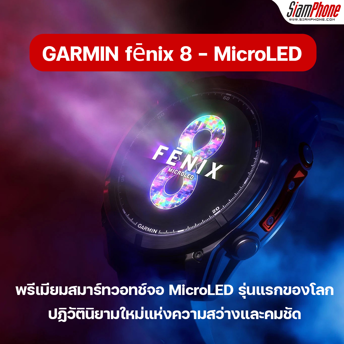 fēnix 8 – MicroLED มาพร้อมหน้าปัดขนาด 51 มม. พร้อมให้ชาวไทยจับจองเป็นเจ้าของตั้งแต่วันที่ 7 ตุลาคมเป็นต้นไป ในราคา 66,990 บาท ที่ Garmin Brand Store และเว็ปไซต์ Garmin.com.ติดตามข้อมูลสินค้าเพิ่มเติมได้ที่ https://www.garmin.com/th-TH/p/1723221/ หรือที่ เฟซบุ๊กแฟนเพจ Garmin Thailand และ อินสตาแกรม Garmin Thailand